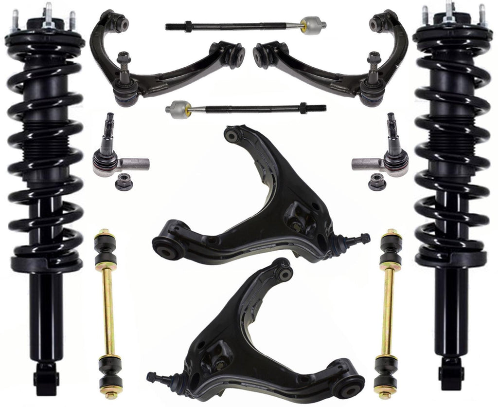 This listing is for a Complete Coil Spring Struts Assembly, Front Upper, Lower Control Arms With Ball Joint Assembly, Inner Outer Tie Rods and Sway Bar Links.