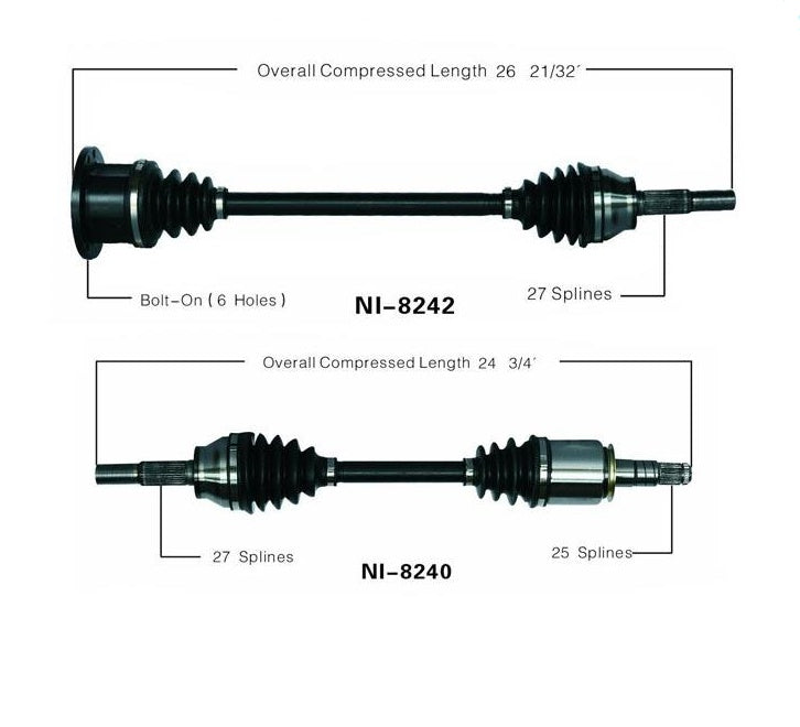 Este es un nuevo eje CV delantero del lado del conductor y del pasajero que se adapta a los siguientes años y modelos de Infinity: INFINITI 2003-2008 FX45...