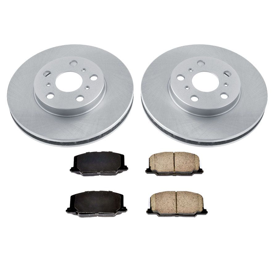 Estás viendo un juego de repuesto de 2 rotores delanteros y pastillas de freno de marca premium de estilo OEM para un Toyota.