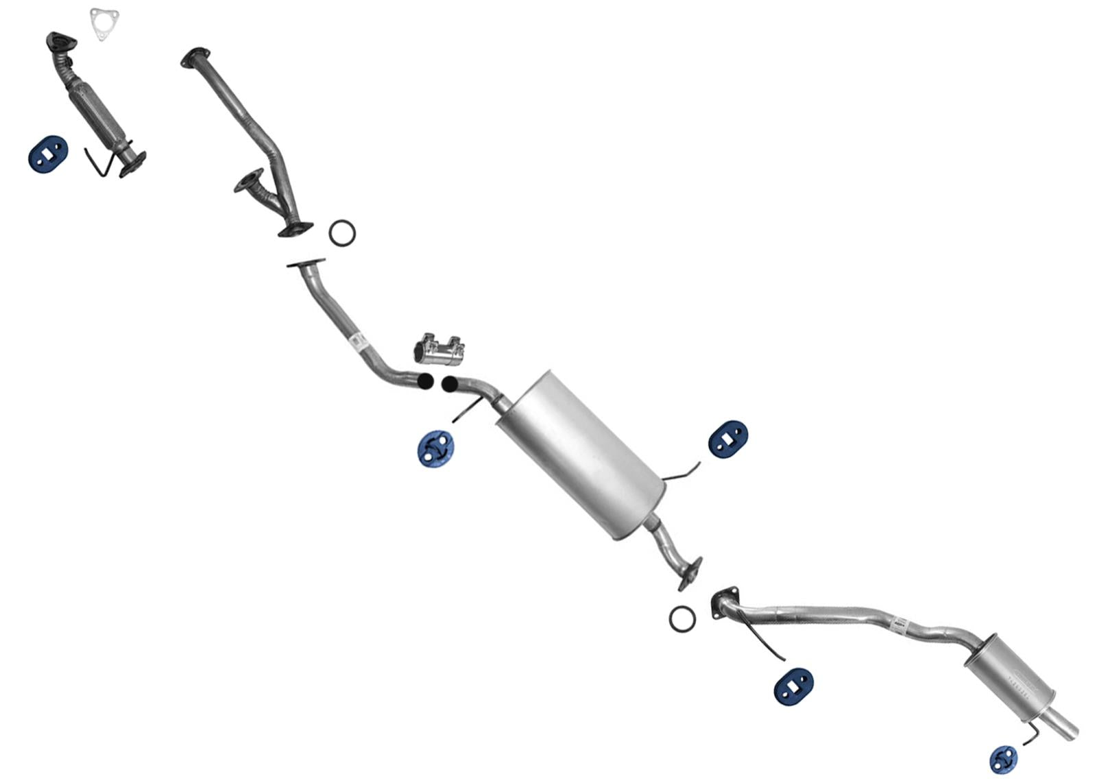 This is a Middle Muffler, Extension Pipe and Rear Muffler, Includes Y Pipe and Drivers Side Flex pipe