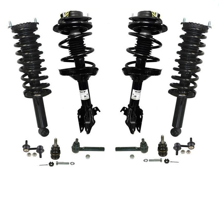 - Contains a pre-assembled replacement bearing plate, upper and lower spring isolators, upper spring seat, coil spring, boot kit, and a premium strut