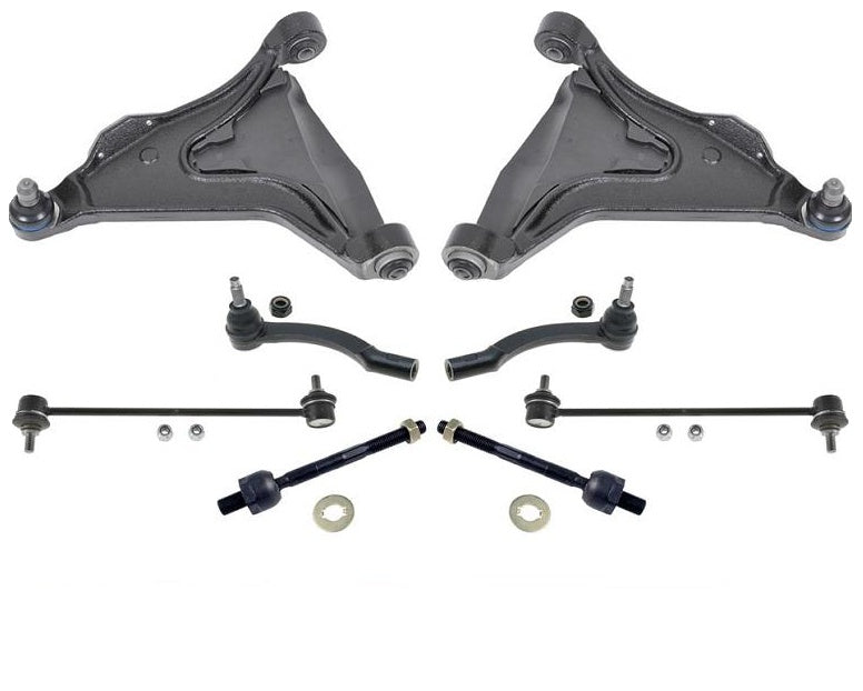 This item is a brand new set of Lower Control Arms, ball joints, Inner and Outer Tie Rod Ends, and Stabilizer Links. It will fit the following makes and models: