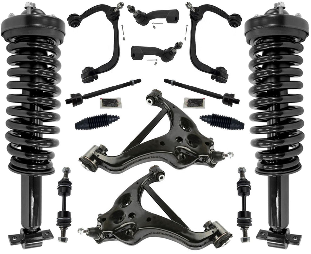 This Listing is for Front Left & Right Complete Struts With Coil Spring Assembly, Front Upper and Lower Controls With Ball Joints Assembly, Front Sway Bar Links, Inner and Outer Tie Rods