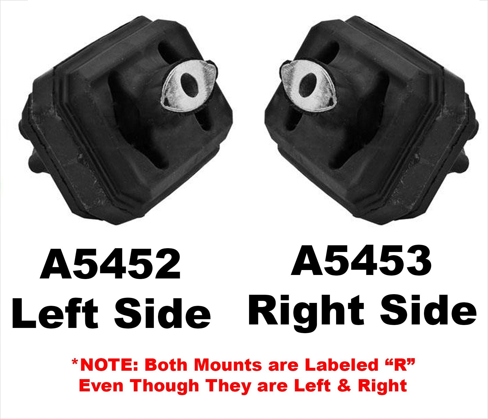 ***Please note because the same casting is used for both of these mounts the rubber on both mounts says "R" even though one is left and one is right
